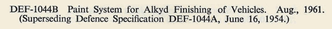 It was to the great annoyance of the paint trade that most proprietary paints failed to comply with the new specifications, but IFV resisted all pressure to relax their requirements. In 1954 they further enhanced the specifications for DEF-1044 and DEF-1045.